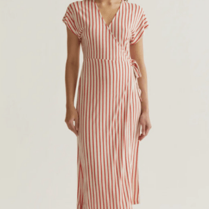 VESTIDO MIDI CON RAYAS ROJAS