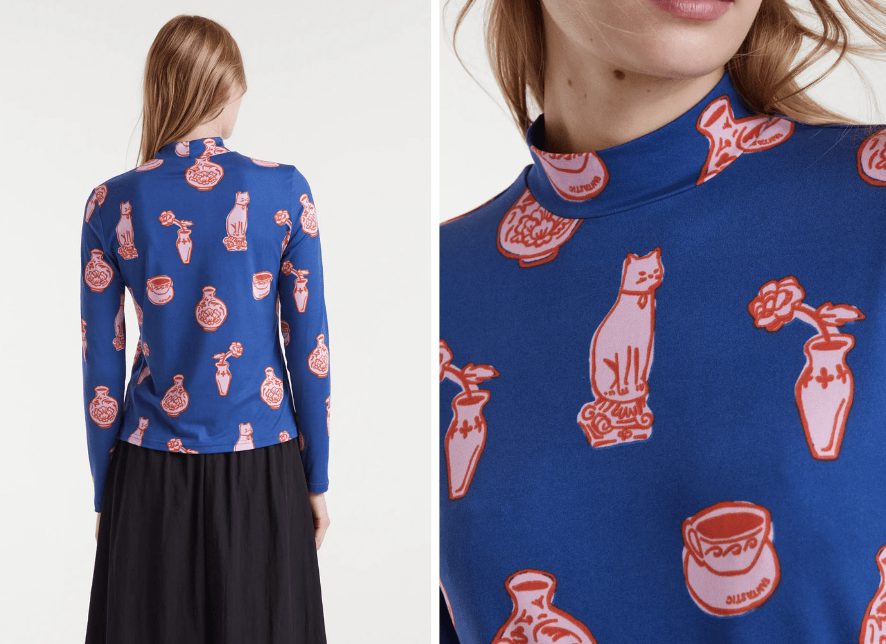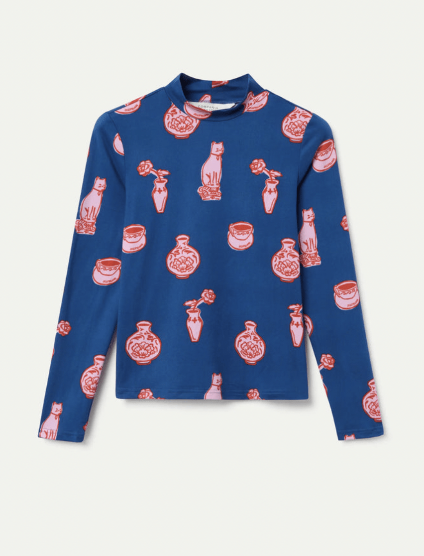 Camiseta con estampado Porcelain. Con cuello mock y manga larga. La modelo mide 179 cm y lleva la talla S.