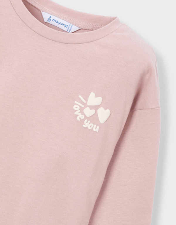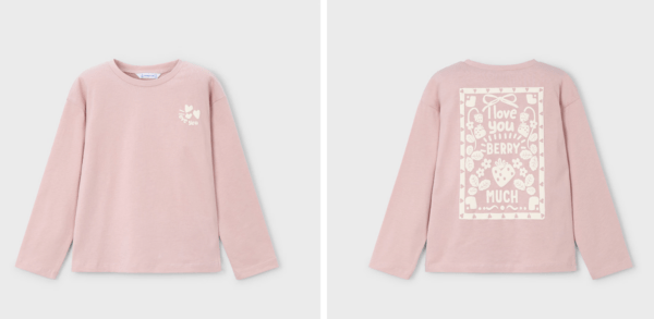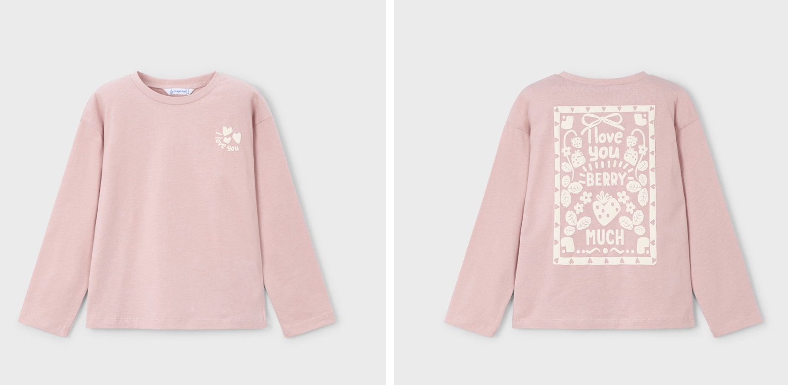 Camiseta de manga larga para niña. Cuello redondo. Tejido 100% algodón. Elementos de adorno: serigrafía (print).