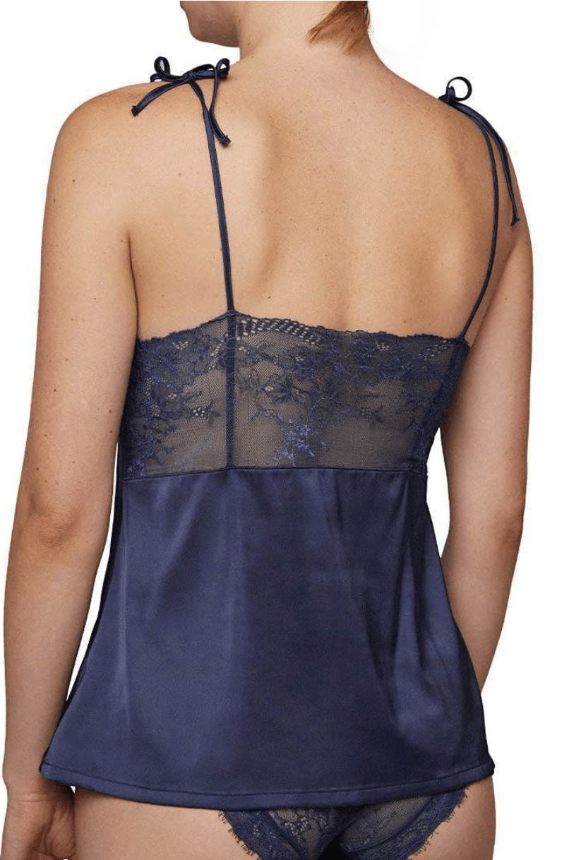- Camiseta de tirantes en suave satén enriquecida con detalles en encaje floral.