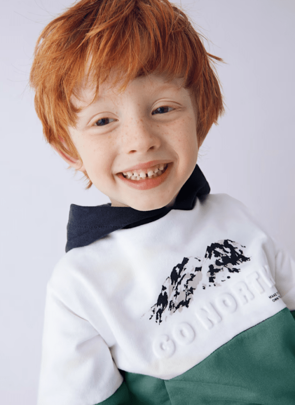 Sudadera de manga larga para niño. Cuello con capucha. Bolsillo funcional en la parte delantera. Elementos de adorno: detalle en relieve (embossed), serigrafía (print).