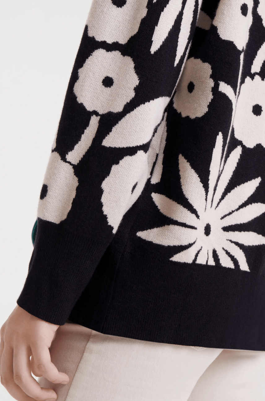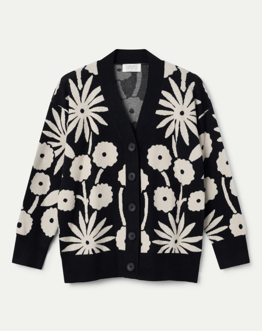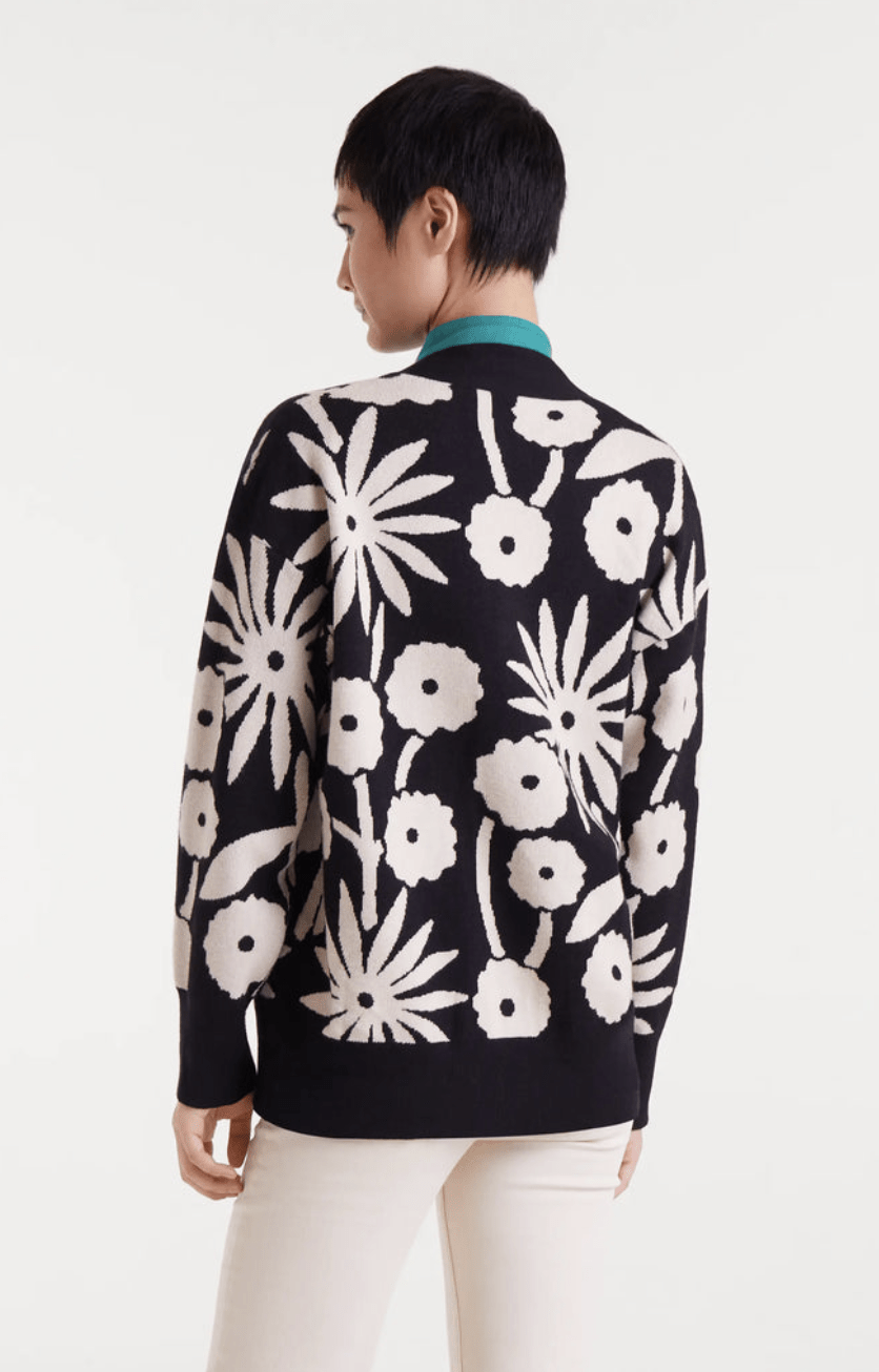 Chaqueta jacquard con estampado Tofu. Con cuello pico y manga larga. Hombro ligeramente caído. Cierre frontal con botones. Detalles en rib. La modelo mide 177 cm y lleva la talla S.