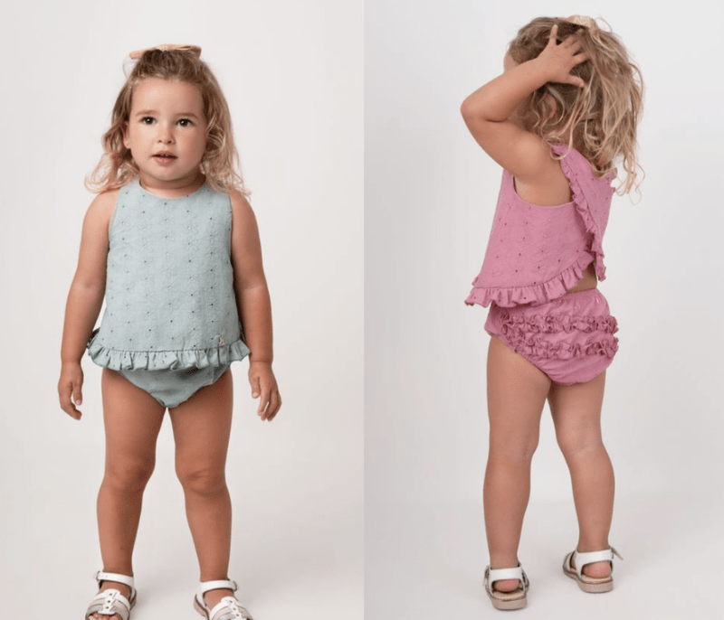 CONJUNTO DE CAMISETA CON BRAGUITA BORDADA EN COLOR ROSA