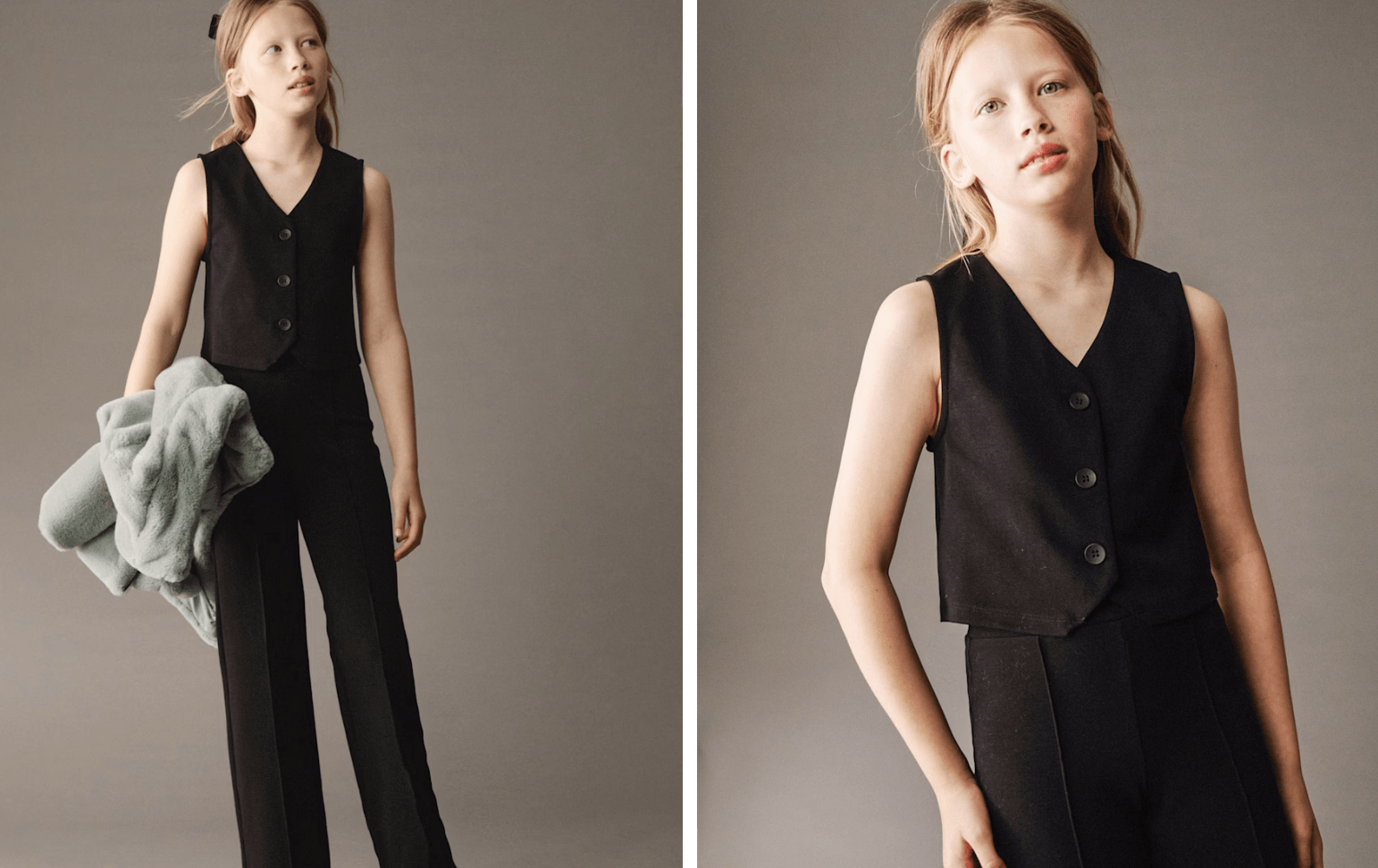 Chaleco para chica. Modelo con cuello de pico. Cierre con botones en la parte delantera.