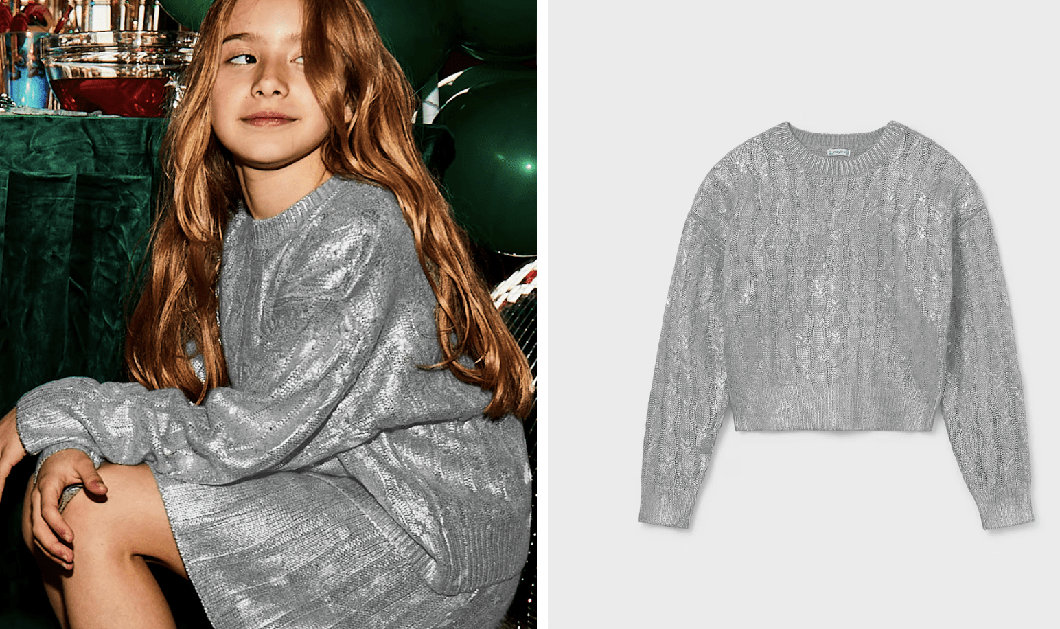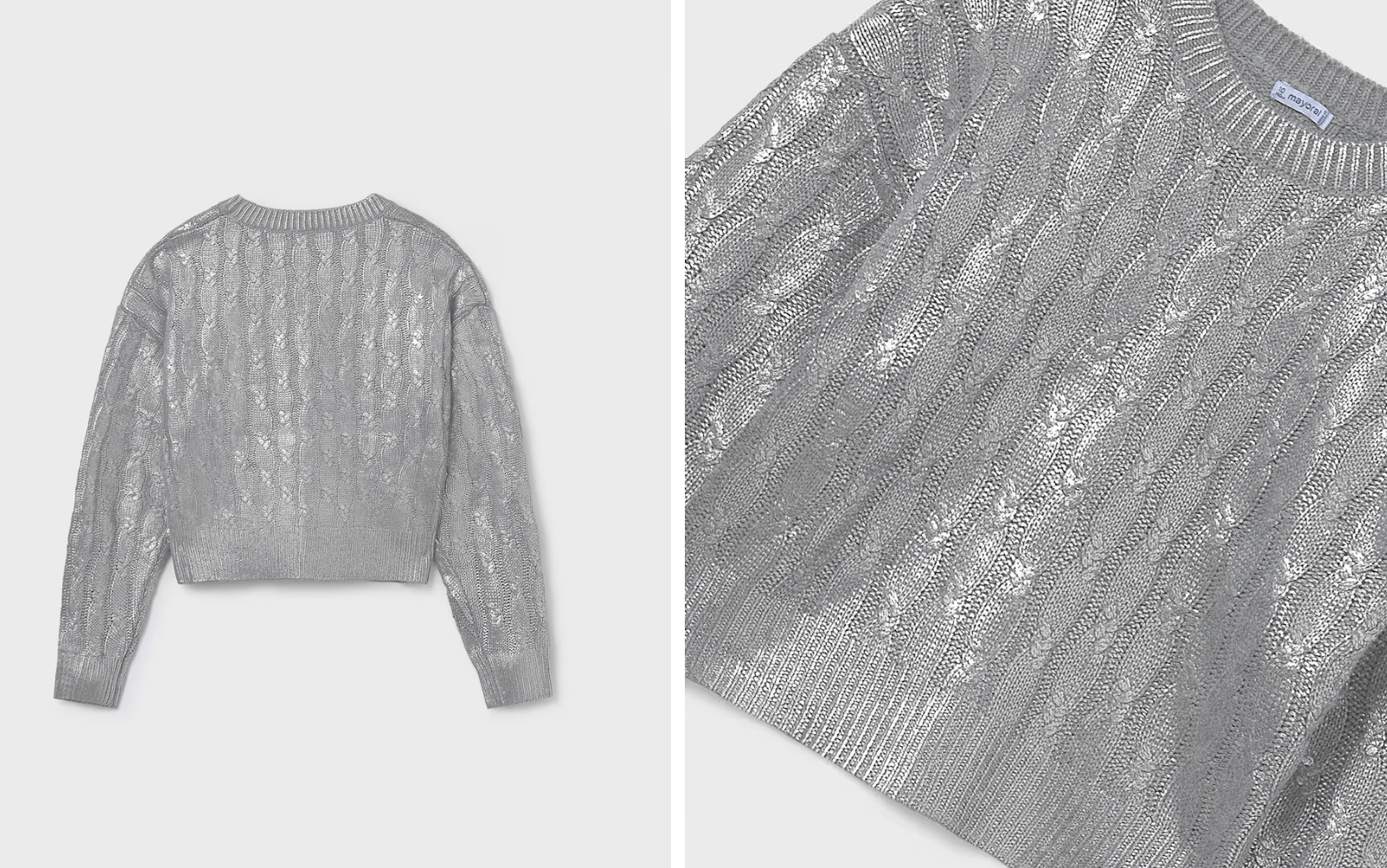 Jersey de manga larga para chica. Cuello redondo. Diseño exterior con efecto trenzado.