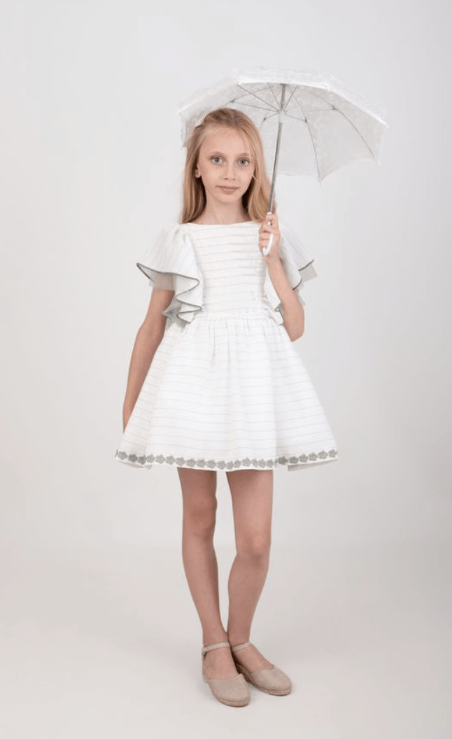 VESTIDO BLANCO CON DETALLES VERDE OLIVA