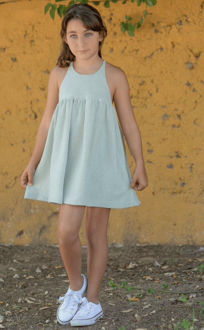VESTIDO CON DETALLES EN LA ESPALDA EN COLOR VERDE Y BLANCO